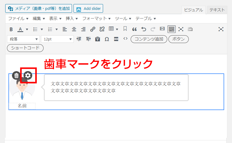 1.パーツ内をクリックすると出てくる歯車ボタンをクリック