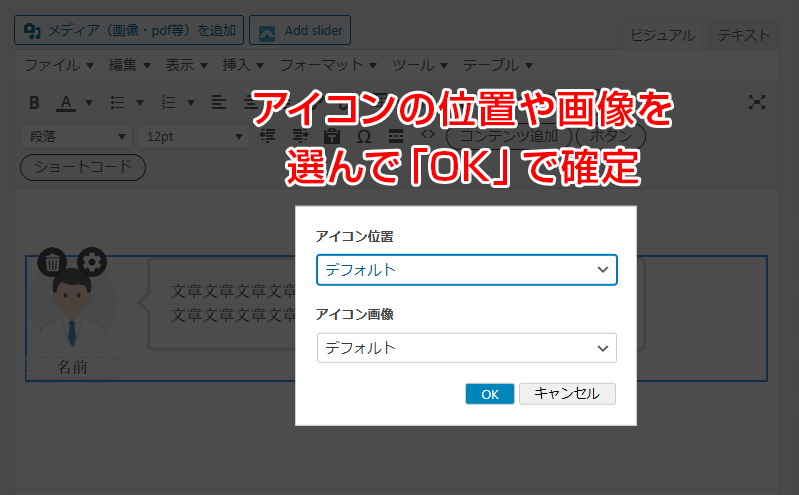 2.アイコン位置とアイコン画像を選択し「OK」で確定