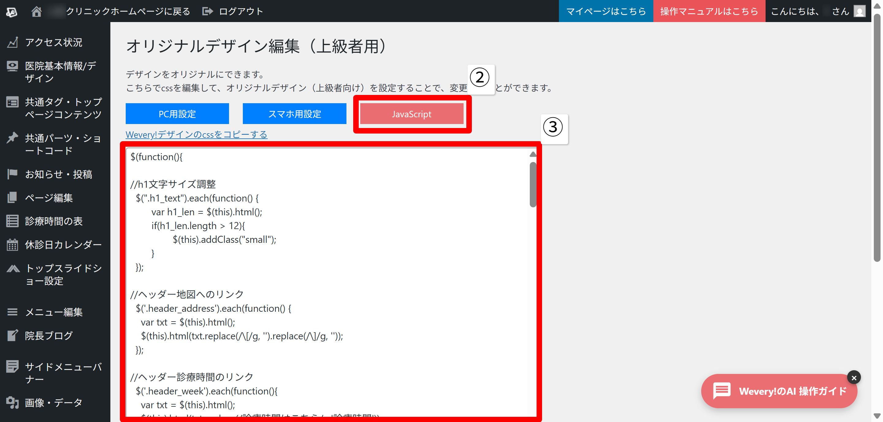 このマニュアルではオリジナルデザインでのJavaScript追加方法について記載ます。